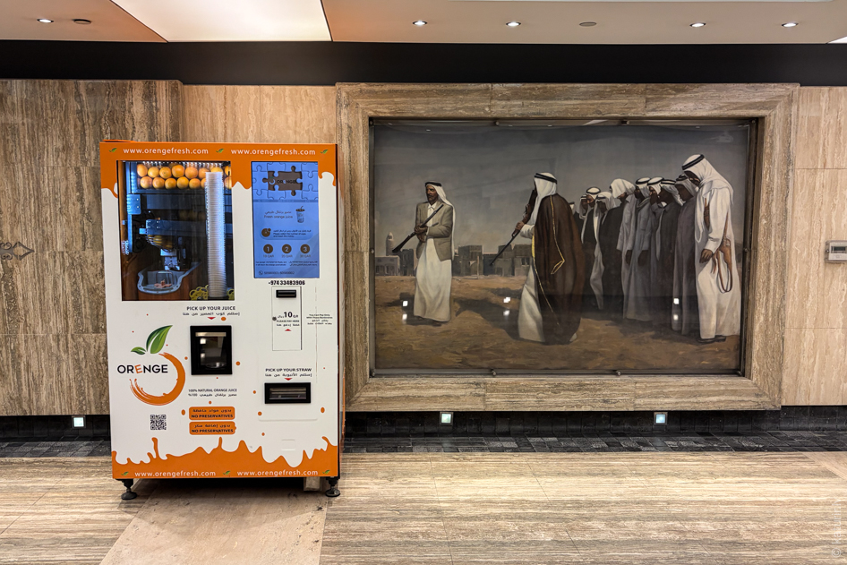 Pat svaigi spiestas apelsīnu sulas automāts, ko apsargā dižciltīga katariešu kungu delegācija. Origo tuneli, mācies!