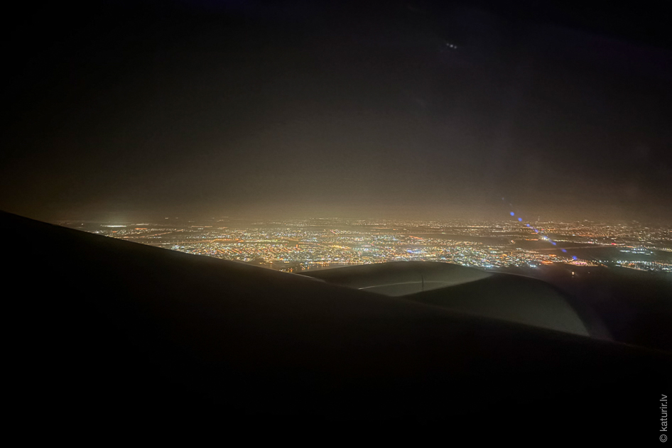 Pēc nakts jaukā, aviokompānijas subsidētā viesnīcā (tā saucamās stopover programmas ietvaros par gana daudz zvaigžņu numuriņu maksājam tikai 20 eiro par nakti) beidzot var ieraudzīt pilsētu dienasgaismā. Skats pie tam gana ekskluzīvs – tālumā redzamā lielā ēka ar karogu ir valsts priekšnieka, emīra pils!