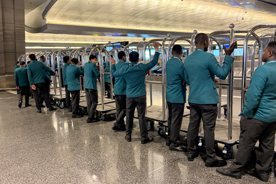 Ir vēls, milzīgā lidosta ir faktiski tukša, bet pie bagāžas lentēm tāpat mūs sagaida Vesa Andersona filmas cienīgs skats – vesela strīpa ar solīdiem bagāžas ratiņu pilotiem.