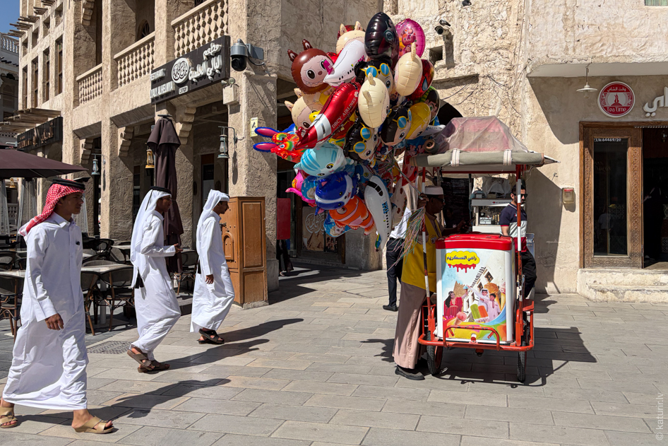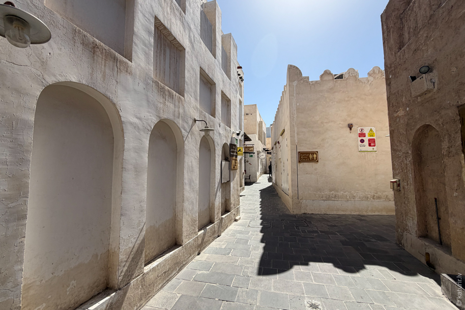 Un tad, raiti soļojot, notiek attapšanās pazemes tunelī zem dzīvīgas ielas, lai tiktu uz mikroskopisko Dohas vecpilsētu, Souq Waqif. Nu, ko lai te saka. Elektriskais eskalators, stikla durvis, kas atdala kondicionēto tuneļa daļu no nekondicionētās. Perfekta tīrība, marmors, gleznojumi uz sienām.