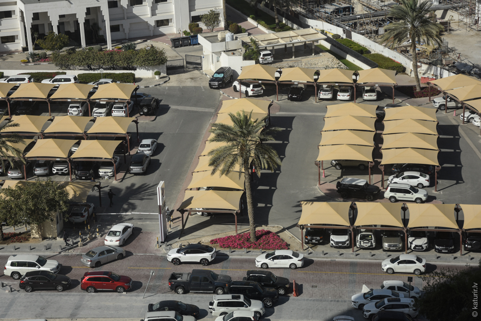 Acīs krīt arī pirmās vietējās nianses – stāvvietas ar saulessargiem. Gluži kā Kuveitā.