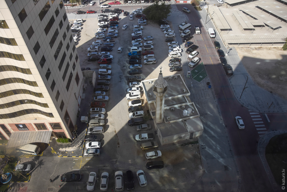 Paskatoties lejā beidzot saprotu, no kurienes mūs piecos no rīta modināja ļoti skaļš un ļoti enerģisks mulla – starp automašīnu lērumu noparkota arī mazmazītiņa mošeja!