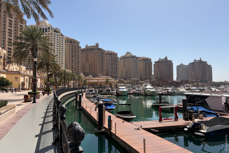 Jahtu lērums un diezgan vienveidīgas brūnas ēkas – tāds ir pirmais iespaids par šo gana luksusīgo Dohas rajonu.