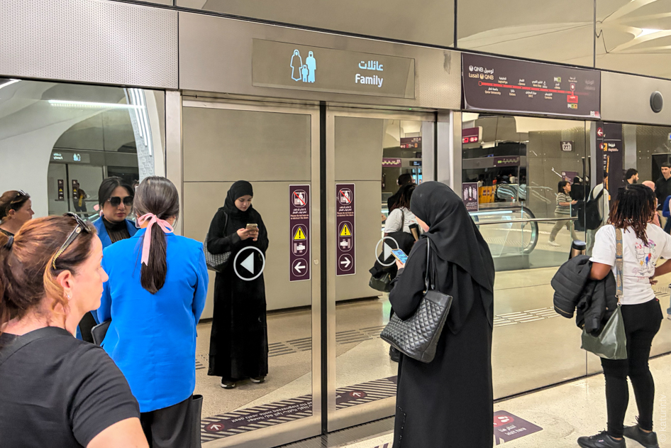 Sliedes stacijā ir droši norobežotas ar sienu un vārtiem, kas atveras precīzi kopā ar piebraukuša vilciena durvīm. Vagoniem ir trīs formāti – zelta, kaut kādas vietējās VIP kartes īpašniekiem, ģimenes vagons, kuru izvēlas arī teju visas sievietes, kā arī kopējais, kurā brauc visi pārējie.