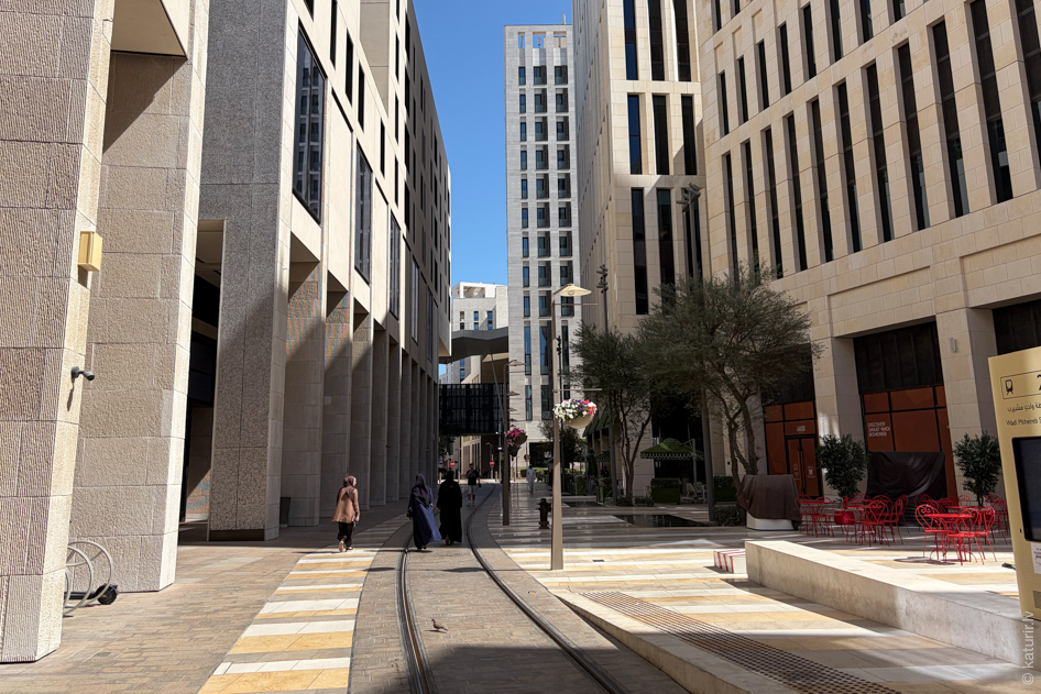 Turpat netālu no vecpilsētas atrodas nesen uzpucētais, modernais rajons Msheireb Downtown Doha. Izskatās ļoti labi. Vienīgā bīstamā lieta – šeit kursējošā tramvaja sliedes ir tik nepamanāmas un integrētas laukuma segumā, ka, austiņās klausoties kāda imāma treļļus, pārvietošanās pa šo ieliņu kopā ar tuvojošos vagonu var palikt gana bīstama.