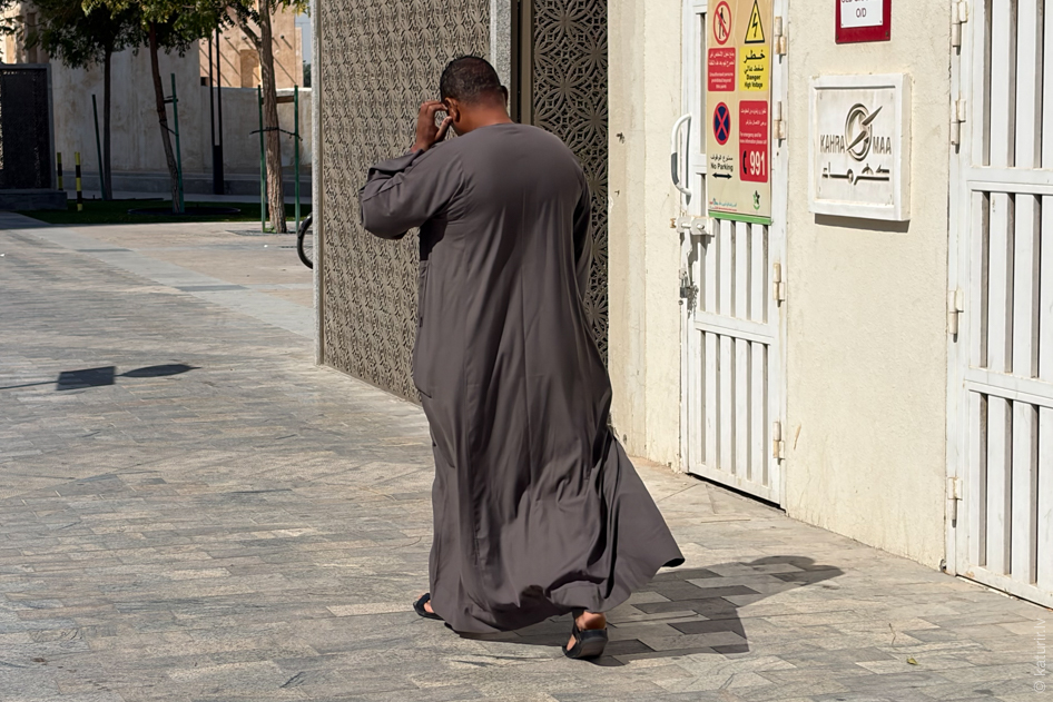 Tā tas izskatās dzīvē. Šo tērpu sauc thobe un es patiesi nespēju saprast, kā visiem ielās redzamajiem kungiem tas var saglabāties tik kraukšķīgi sniegbalts.