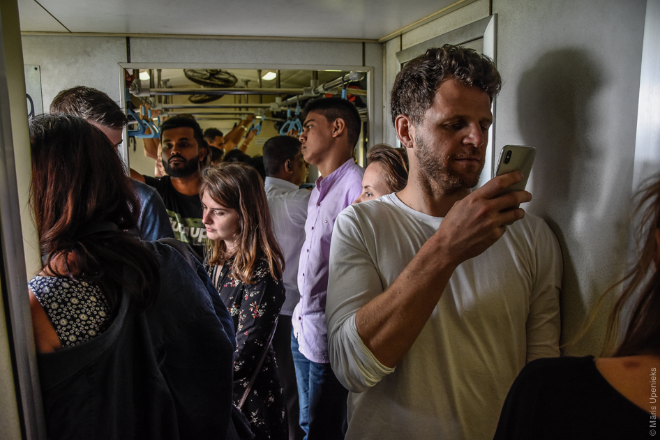 Vilciens ir tik pilns, ka slavenos skatus pa tikpat slaveni braucot atvērtajām durvīm sākumā varu vērot vien šādā izpildījumā.