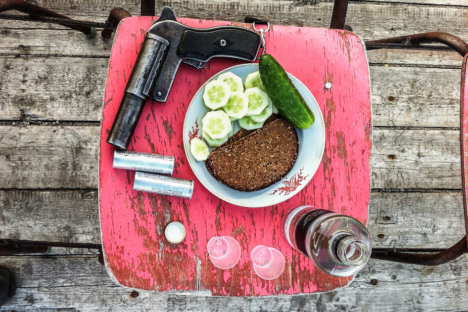 Ja norvēģi ievēro noteikumus un ir līdz apnikumam pareizi, tad krievi ir klasiski sirsnīgi – izbrīnīts uzzinājis, ka mums nav ieroča, vietējais galvenais mums vēlīgi izsniedz raķešpistoli ar divām patronām. Pret lāčiem, drošībai. Un aizmirst noinstruēt, kā tā ir lietojama – šaujot lāci, vai šaujot gaisā, lai sauktu palīgā. Lai vai kā, ir iemesls jauniegūto aizsardzības līdzekli nosvinēt.