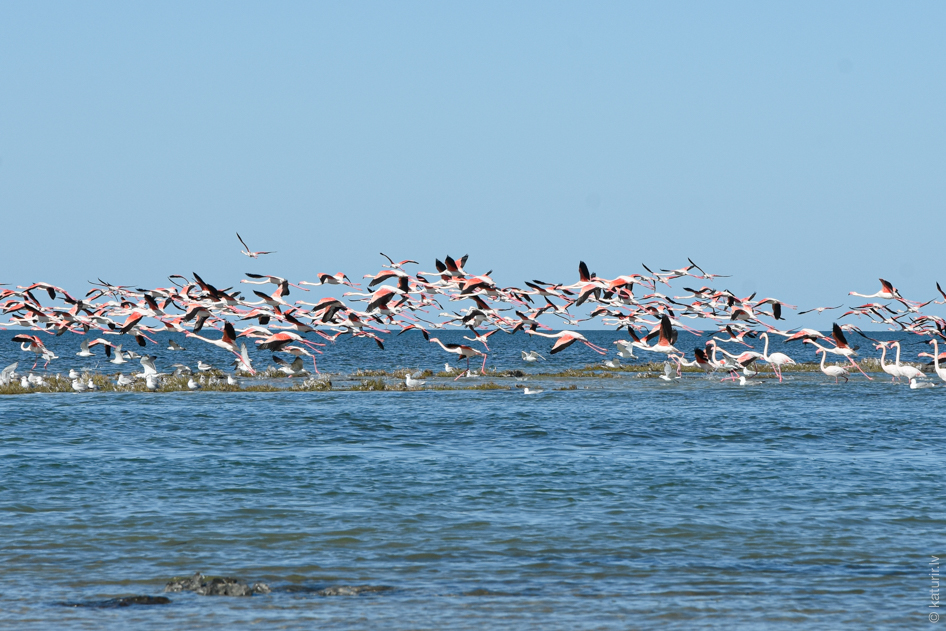 Džerbas salā vietējie man piesolīja flamingus – pats neticēju, ka tiešām arī pamanīju bariņu ar tiem. Tikai jāsaka, ka tunisiešu flamingi tādi pablāvi, smukais rozā tonis pārsvarā padusēs.