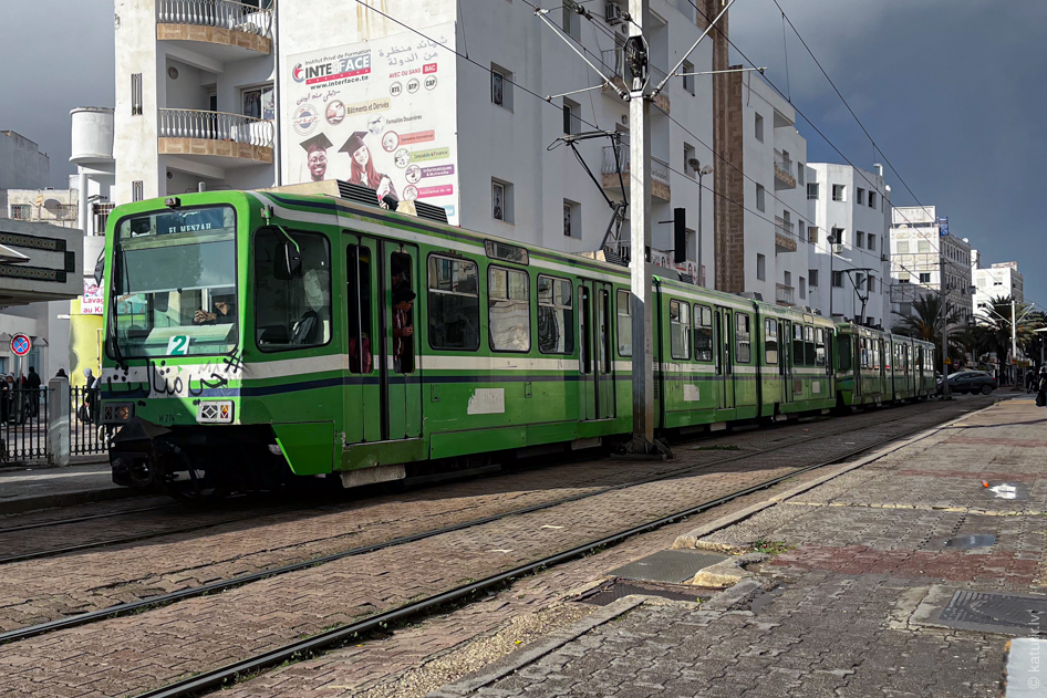 Kas atliek tiem, kam sava auto nav? Viens no garākajiem tramvajiem, kādu dzīvē esmu redzējis. Kursē pa Tunisas ielām skaists un zaļš. Tas nekas, ka kāds stikliņš izsities, toties var pārvadāt daudz jauku ļaužu.