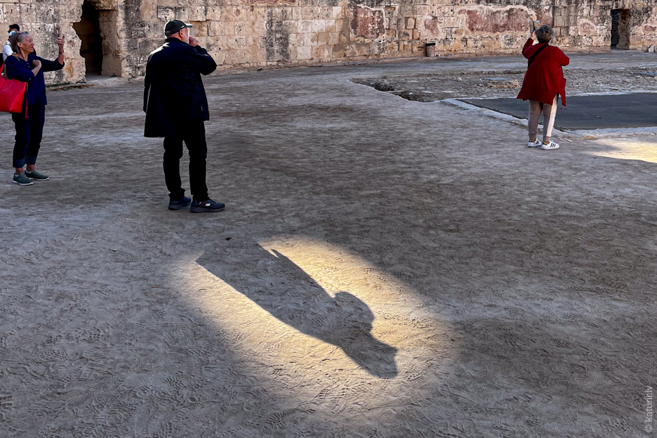 No apskatītā vēsturiskā materiāla visiespaidīgākais tomēr izrādās jau pieminētais El Jem amfiteātris, burtiski tāda pats Kolizejs kā Romā, tikai nedaudz mazāks. Te arī ir vienīgā vieta visā brauciena laikā, kurā trāpu uz kaut cik blīvu ārzemju tūristu koncentrāciju.