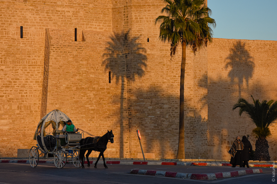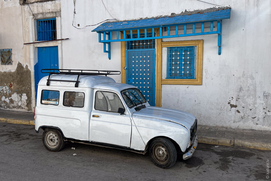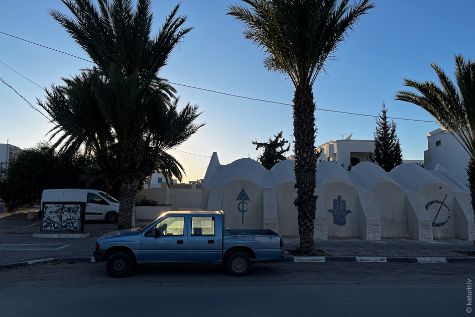Nākamā lieta, kas mani Tunisijā interesē ir – kā izskatās vietējā arhitektūra. Šķiet, ka pēc klasiskā Austrumu piegājiena – neuzkrītoša ārpuse aiz bieziem mūriem, viss skaistums ēku iekšiņā.