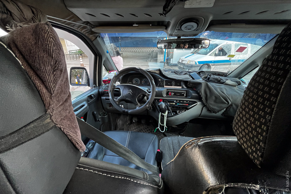 Labi, brauksim tālāk. Spilgts un atsevišķs piedzīvojums ir Tunisijas pusoficiālā transporta sistēma, ņipri mikroautobusiņi, nosaukti elegantā franču vārdā – louage. Salons tipiskam mikriņam izskatās šādi.