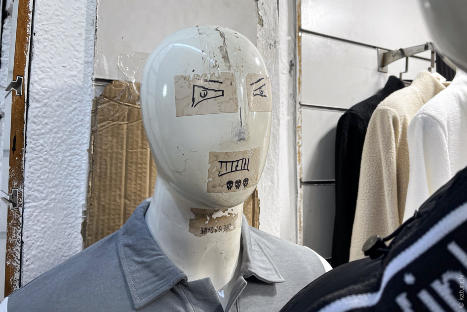 Aci priecē arī ar roku gleznots tirdzniecības stendu noformējums.