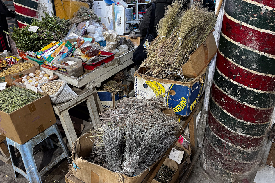 Dažādas zālītes un garšvielas, kā jau austrumu tirgum pienākas.