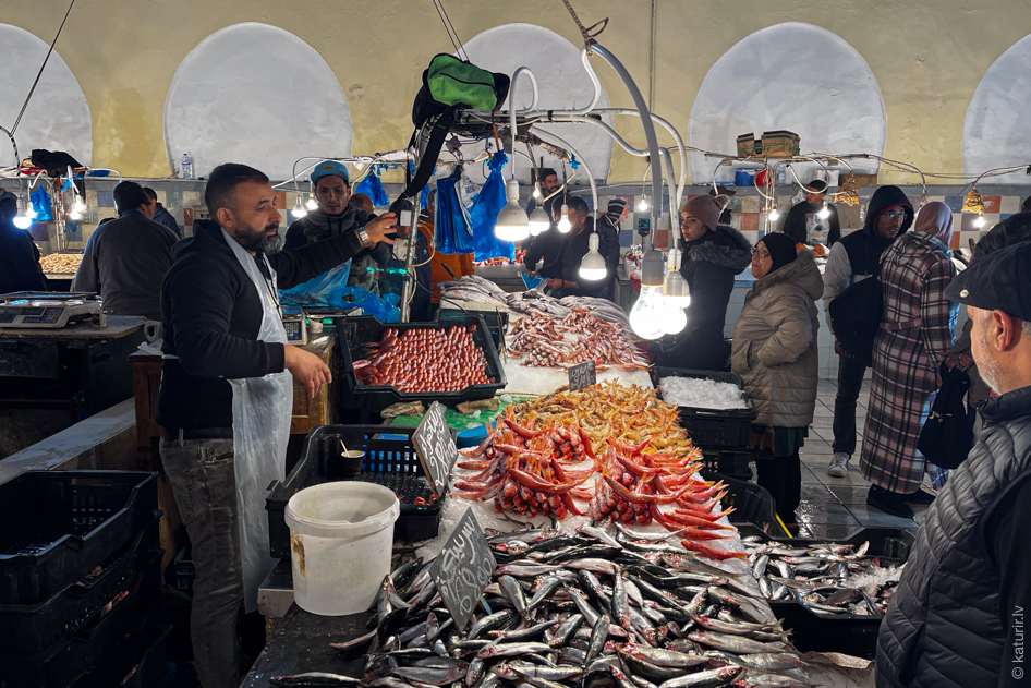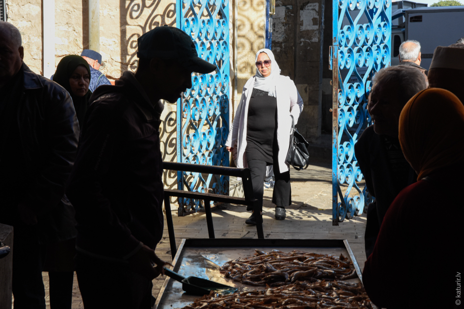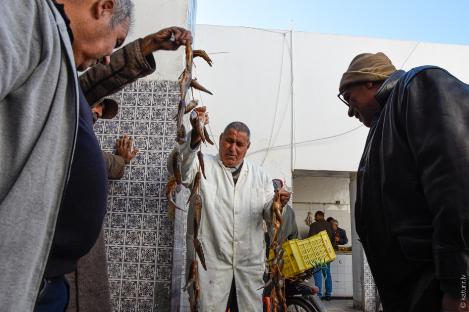 Netīšām uztrāpu uz visai Tunisijai unikālu, tikai Džerbas salā palikušu sensenu tradīciju, kas pamanījusies izdzīvot līdz mūsdienām – ikrīta zivju izsoli Houmt Souk tirgū. Lūk, pat uz sienas uzzīmēta.