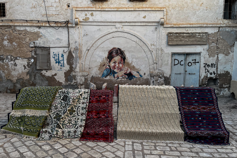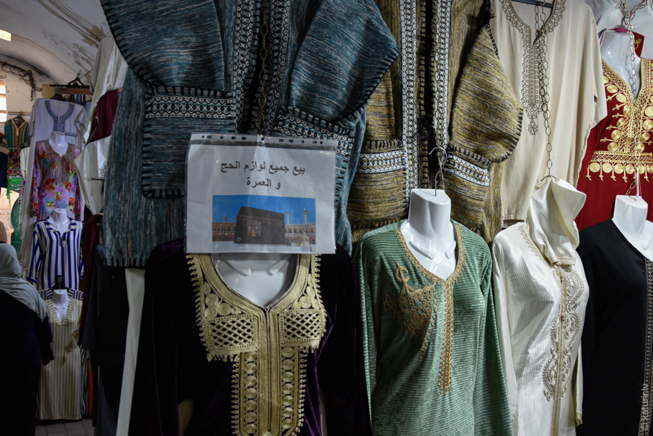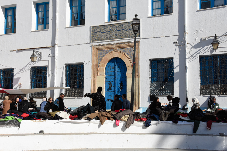 Sfaksas medīnā lietotās drēbes izklāj turpat laukuma malā uz dekoratīvajām kāpnēm.