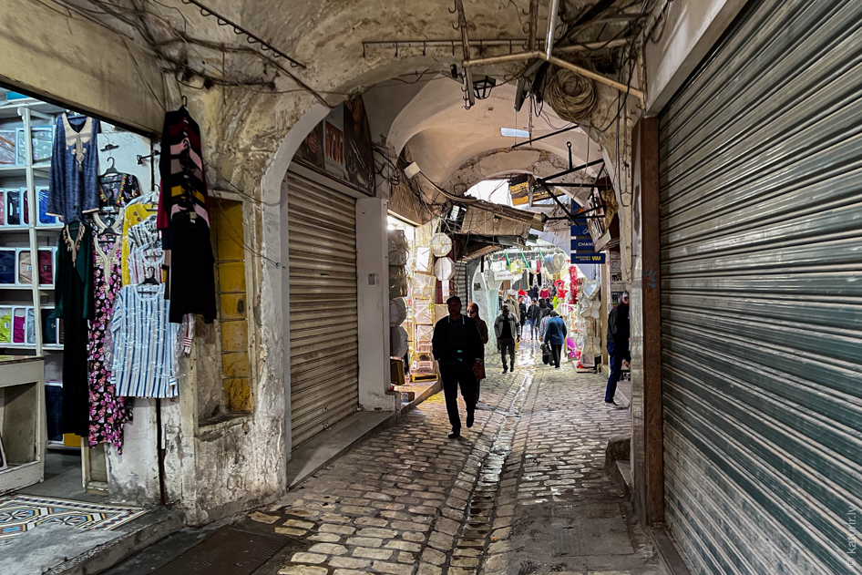 Vēlāk, jau daudz lielākajā metropolē Sfaksā, tās pašas Monoprix ķēdes veikalā trāpos uz pavisam atklātu alkohola nodaļu bez nevienas restes. Vienīgi nosaukums alkozālei joprojām tāds slapstīgs, tulkojot no franču valodas burtiski – pagrabs pilsētā.