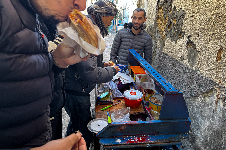 Vēl svarīga vietējās ekonomikas un barības ķēdes sastāvdaļa ir mazi brokastmaižu stendiņi, ko kūrē uzņēmīgi vietējie. Maize, olas, gaļa, mērcītes un turpat tavu acu vietā top ātrs un gana baudāms sendvičs.