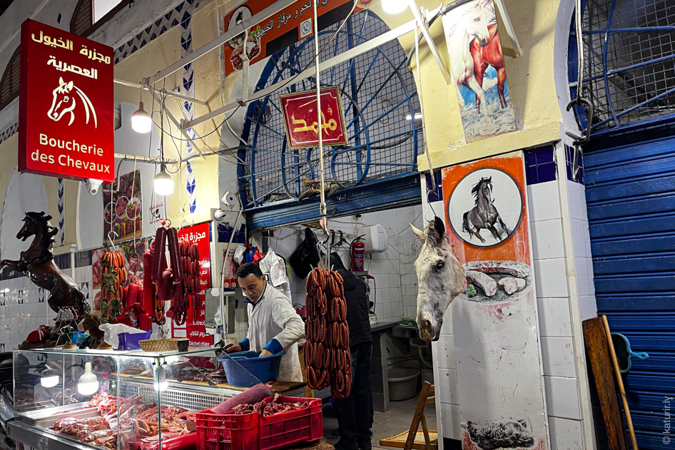 Vēl nežēlīgāks skats man paveras, iemaldoties Tunisas galvenā tirgus nostūrī, kur tiek tirgota zirgu gaļa. Viens ir redzēt desu un apzināties, ka tas ir zirgs, bet tās eksponētās, nocirtstās galvas ir baigi traki.