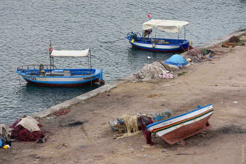 Turpinot par tunisiešu galda kultūras lietām, pakāpsimies nedaudz atpakaļ. Kā jau Vidusjūras dūšīgi apskalotai valstij, svarīga virtuves un vispār kultūras sastāvdaļa ir zivis un zvejniecība. Katrā piejūras pilsētā ir osta ar neskaitāmām zvejas laivām un tīklu čupām krastmalā. Lūk, tīkliem pat uzbūvēti speciāli akmeņu pauguri – droši vien, lai paisums neaizskalo darbarīkus.